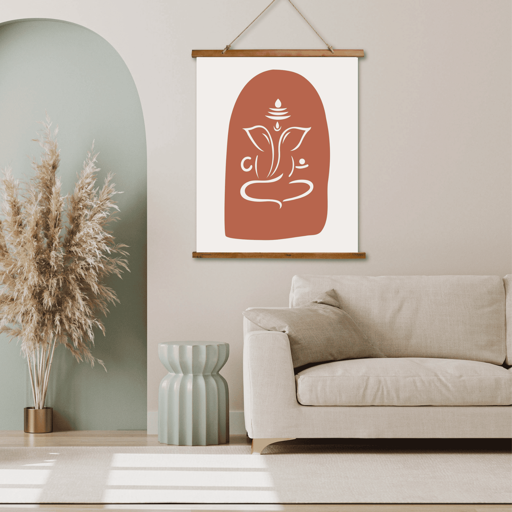 Boho Wood Topped Wall Tapestry with Ganesh Design, Ideal for Yoga Lovers, Home Decor, Wall Art, Meditation
