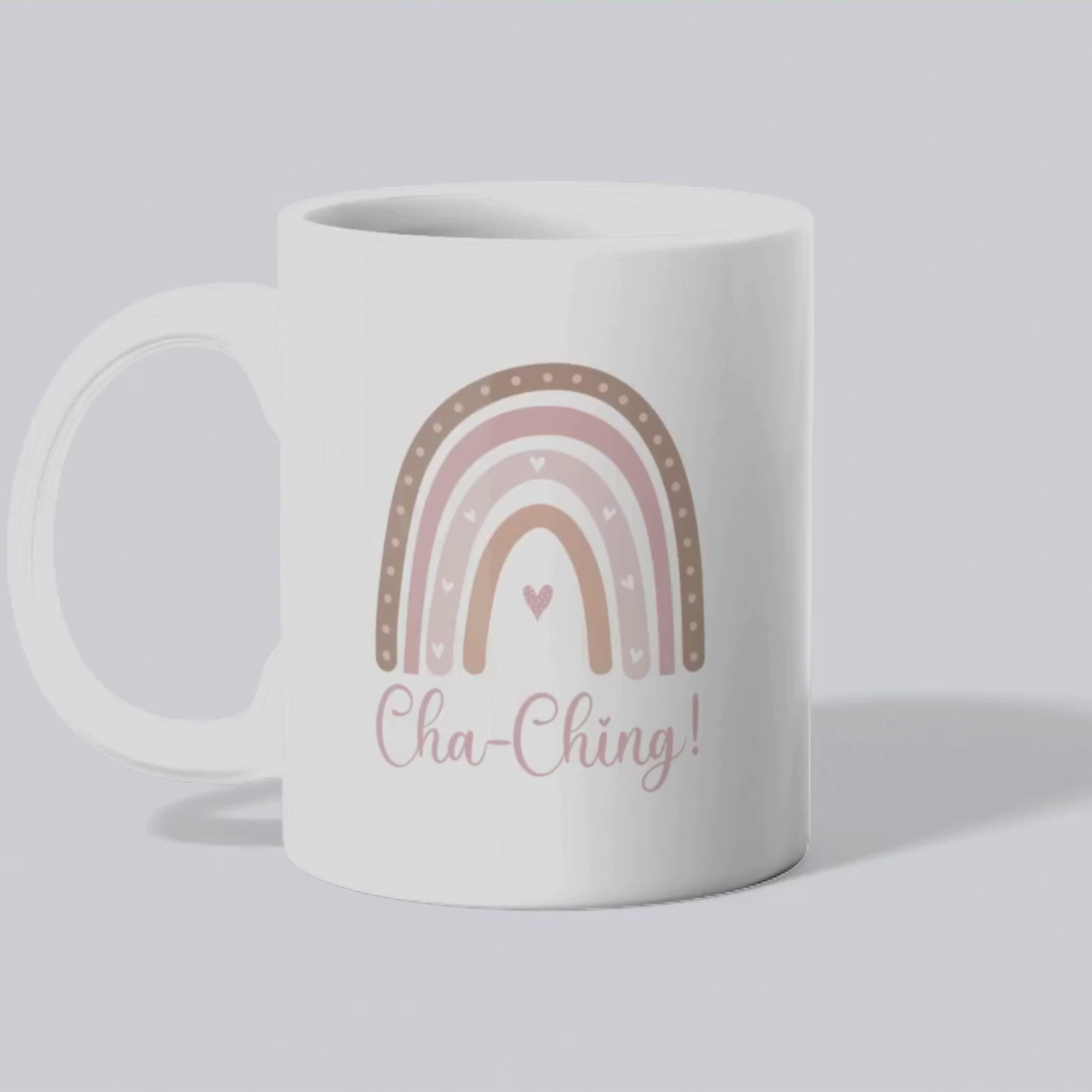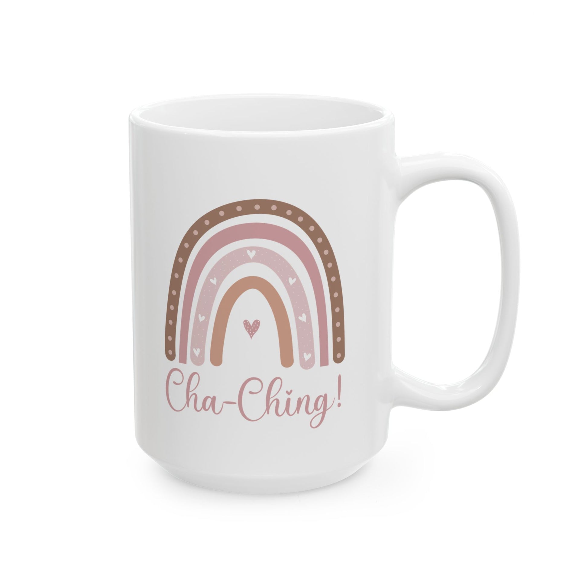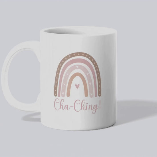 Ceramic Mug for Entrepreneurs, Gift for Small Business Owners, Boho Rainbow Coffee Cup, Cha-Ching Tea Mug, Positive Vibes Cup