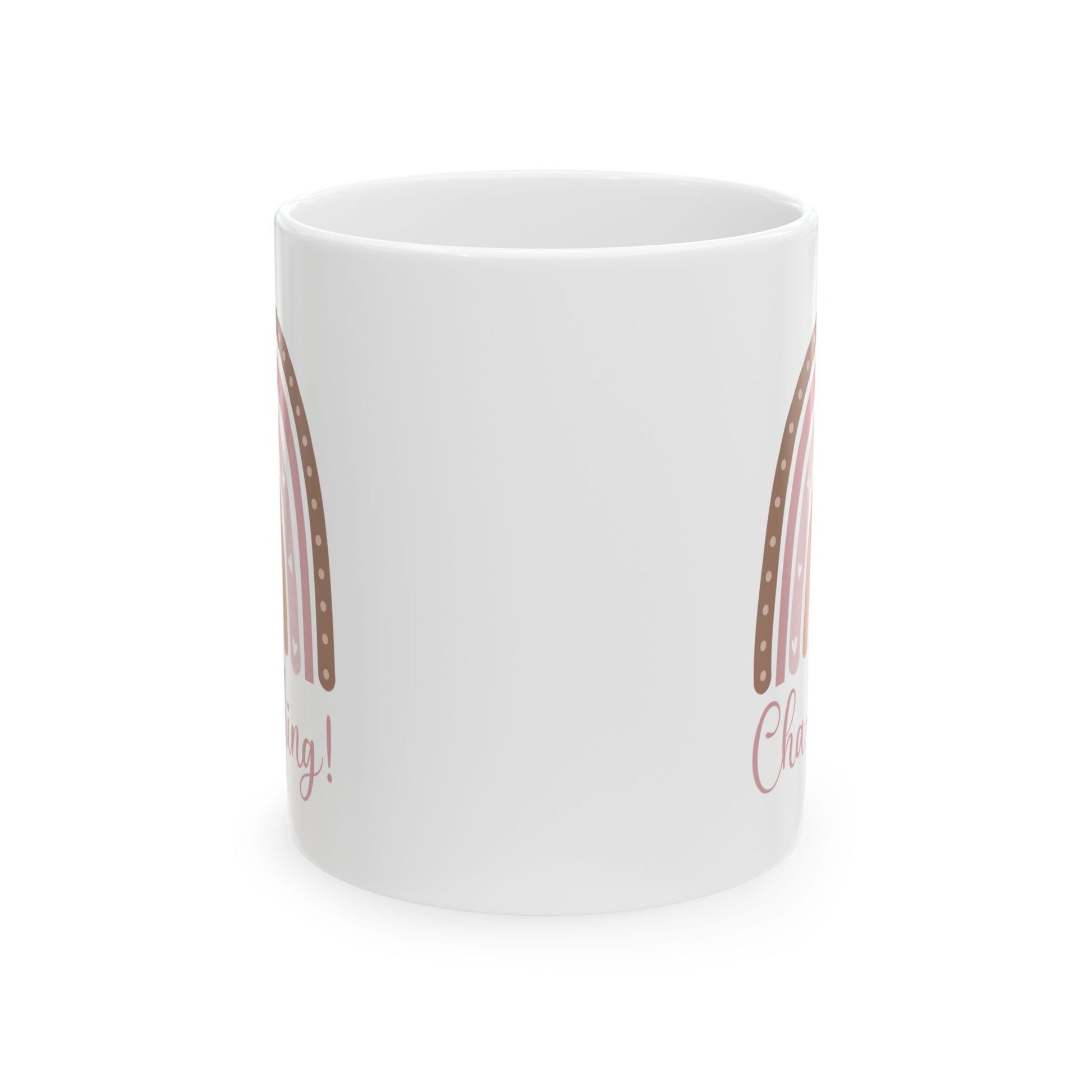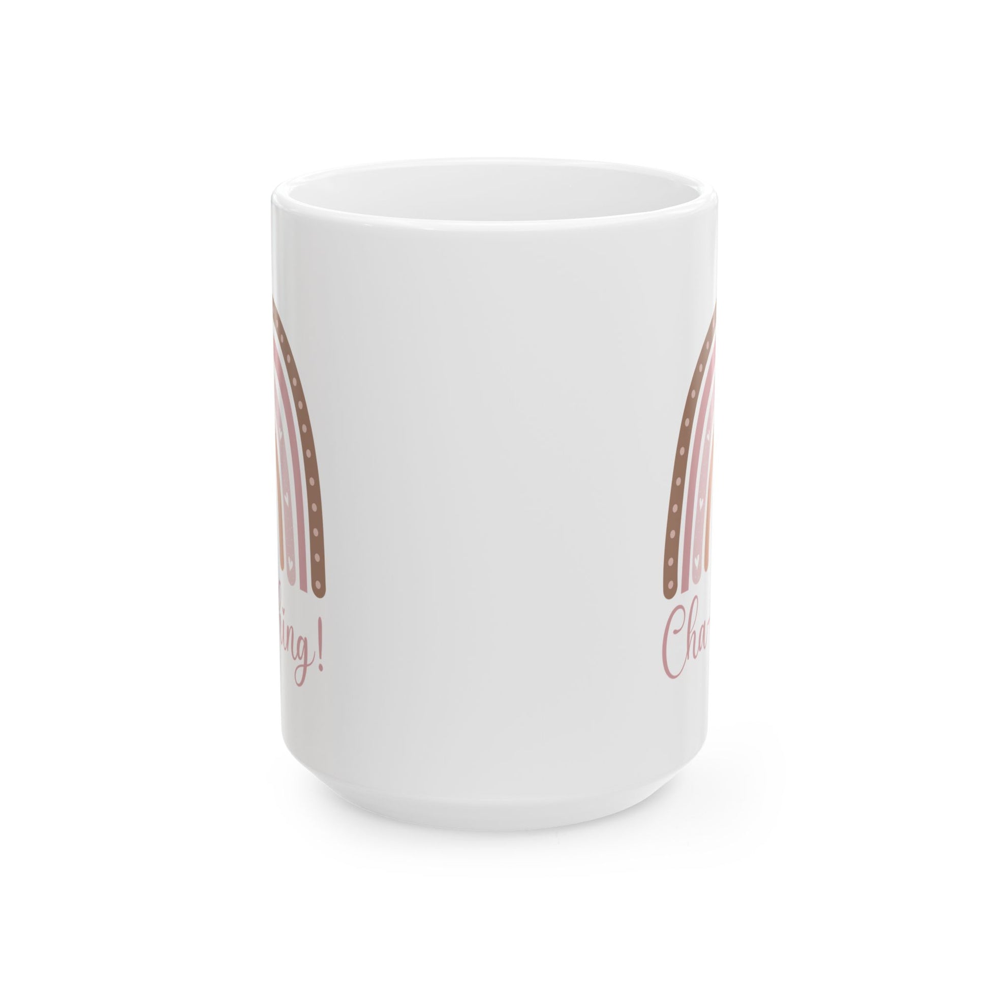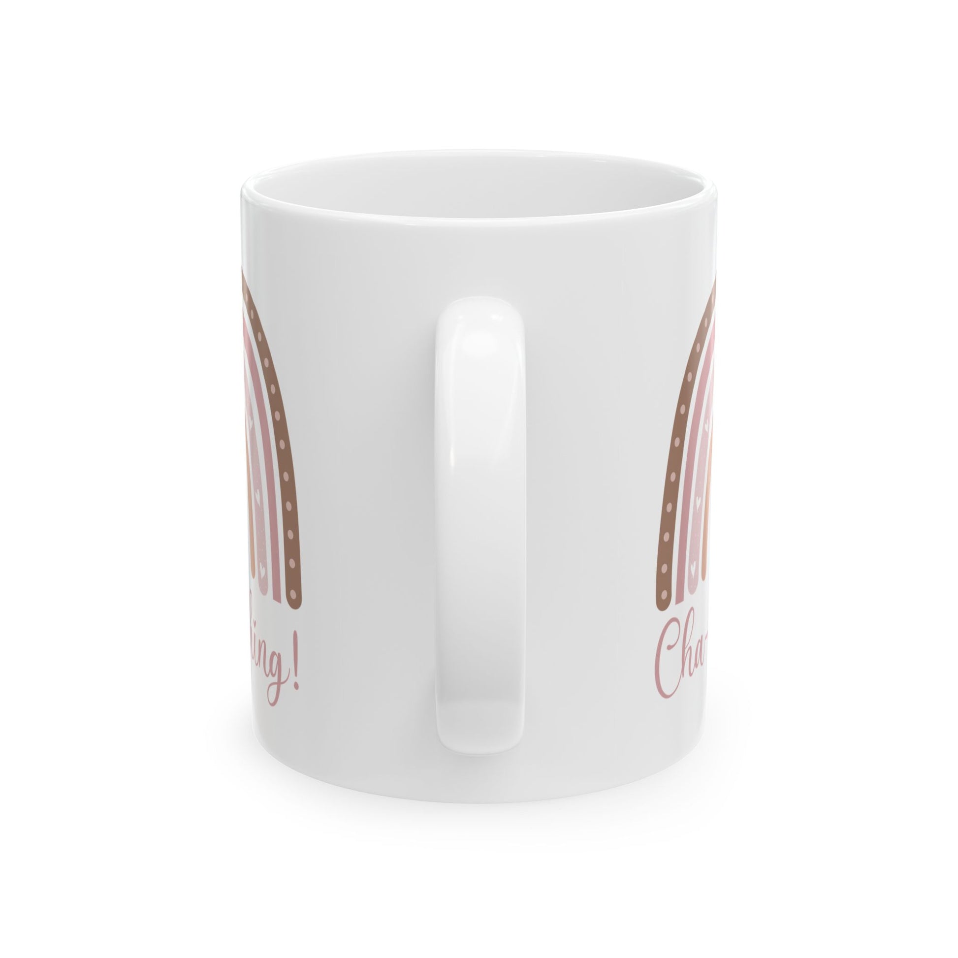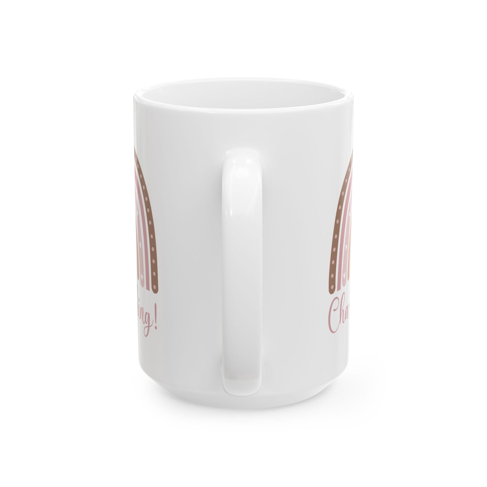 This Cha-Ching mug with Boho Rainbow design is perfect for adding a pop of color to your morning coffee routine. Made with glossy ceramic, this vibrant and microwave-safe mug is suitable for daily use. It comes in two sizes: 11oz and 15oz, with a comfortable C-handle for easy gripping. Lead and BPA-free for your peace of mind.