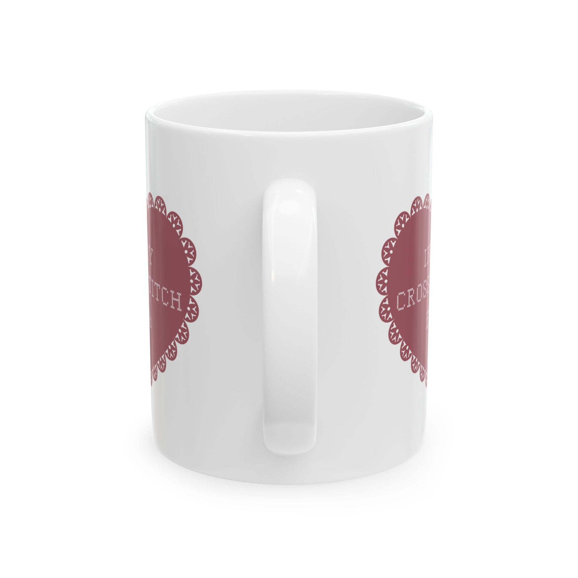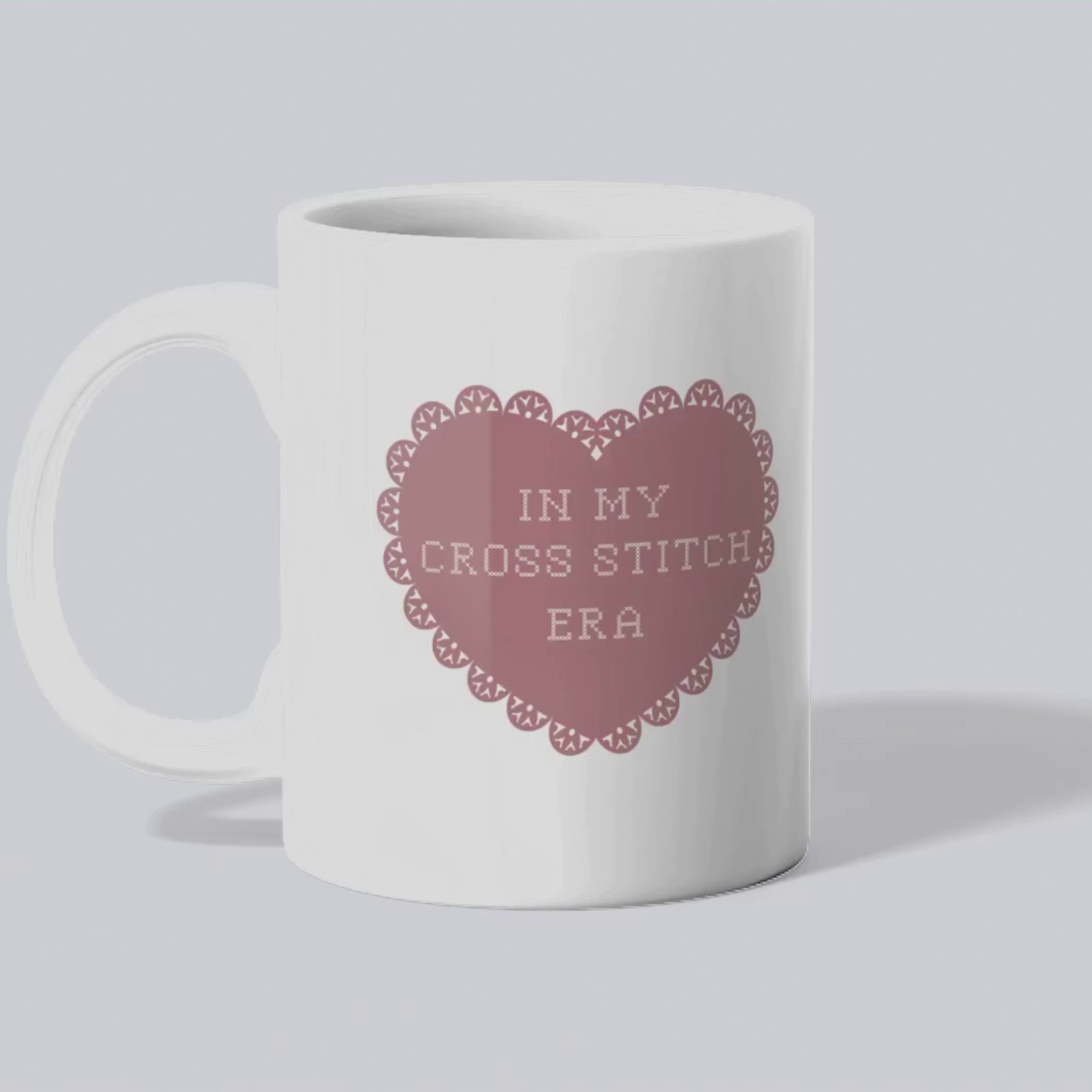 Charming Ceramic Mug for Cross Stitch Lovers with Heart Design, In My Cross Stitch Era, Gift for Her, Coffee Lover's Essential