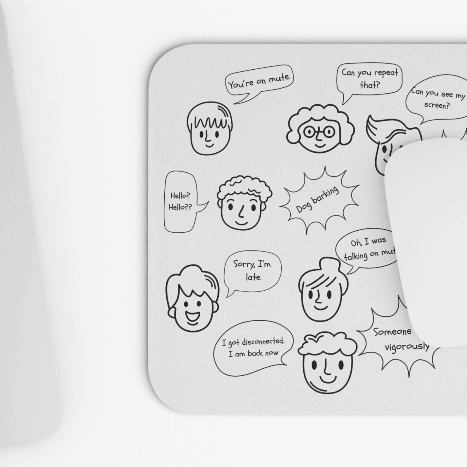 Bring a touch of humor to your home office or workplace with our brand-new mousepad, perfectly capturing the everyday (and often frustrating!) realities of virtual meetings. Featuring a collection of iconic and all-too-relatable conference call phrases like "You're on mute!", "Can you hear me?" etc. this mousepad is guaranteed to get a knowing chuckle from anyone who's navigated the world of remote work. Perfect for remote workers, office pranksters, or anyone who’s survived one too many video calls. This smooth, durable mousepad not only adds personality to your desk—it also reminds you of the digital chaos we call productivity.