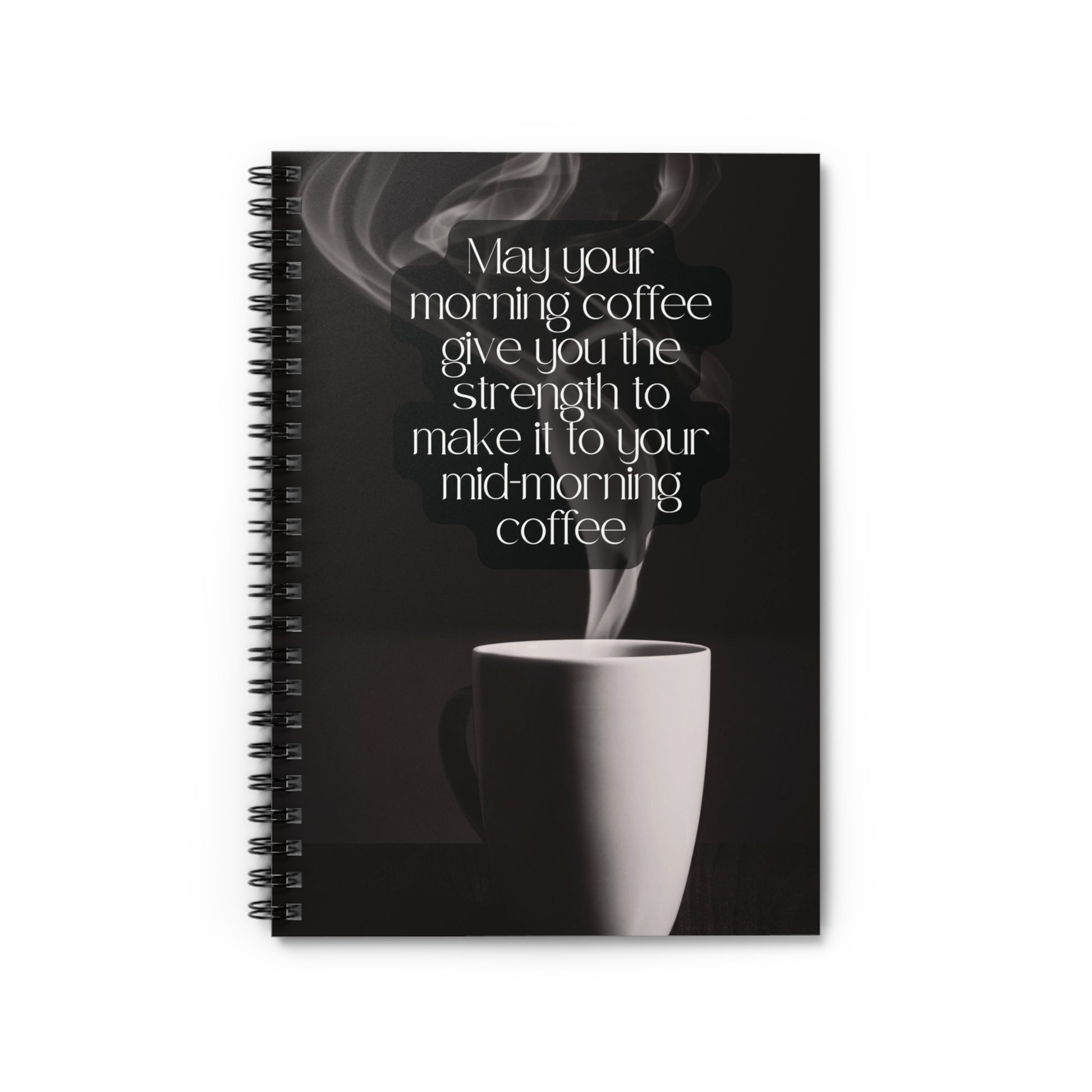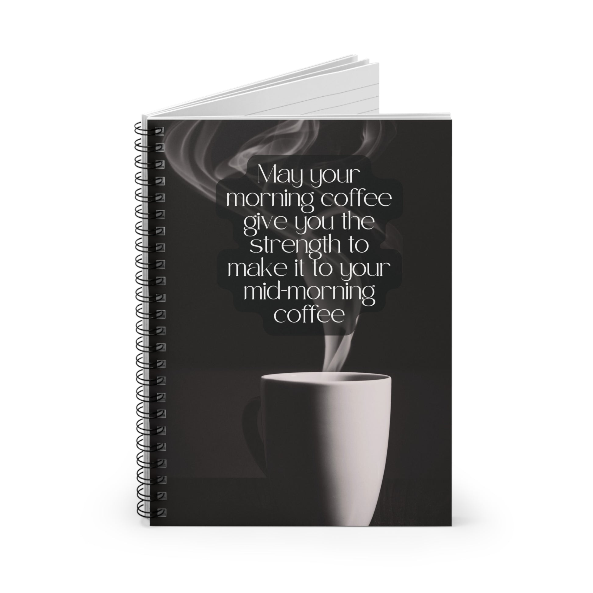 This spiral notebook is perfect for anyone who appreciates the art of writing, note-taking, or journaling. With its elegant design featuring a coffee-themed motivational quote, it brings a calming yet energetic vibe, making it ideal for early risers, students, or professionals. The 90gsm ruled paper invites you to fill the pages with your thoughts and ideas while maintaining a sophisticated look with its metal spiral binding. Perfect for everyday use or as a thoughtful gift, this notebook fits seamlessly into any workspace or study environment. It’s a wonderful choice for holidays, back-to-school season, or just as a delightful surprise for coffee lovers and journaling enthusiasts alike.