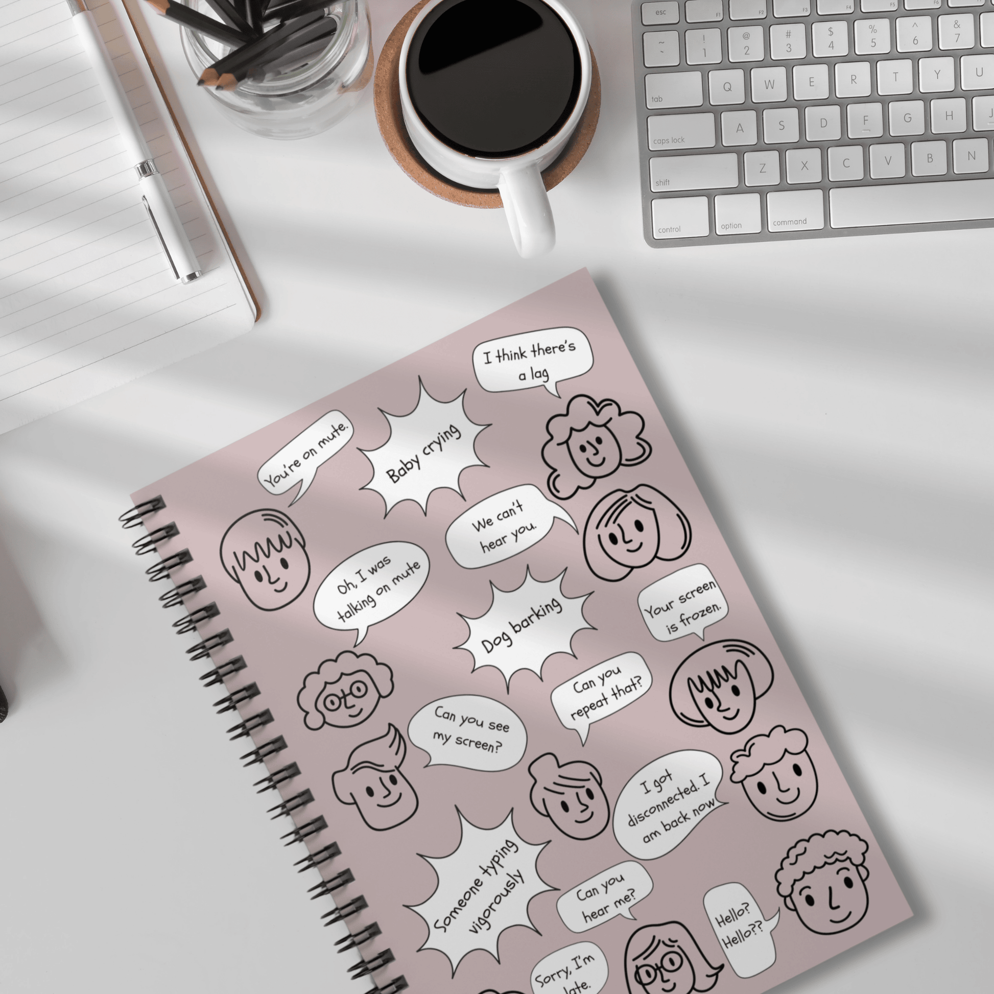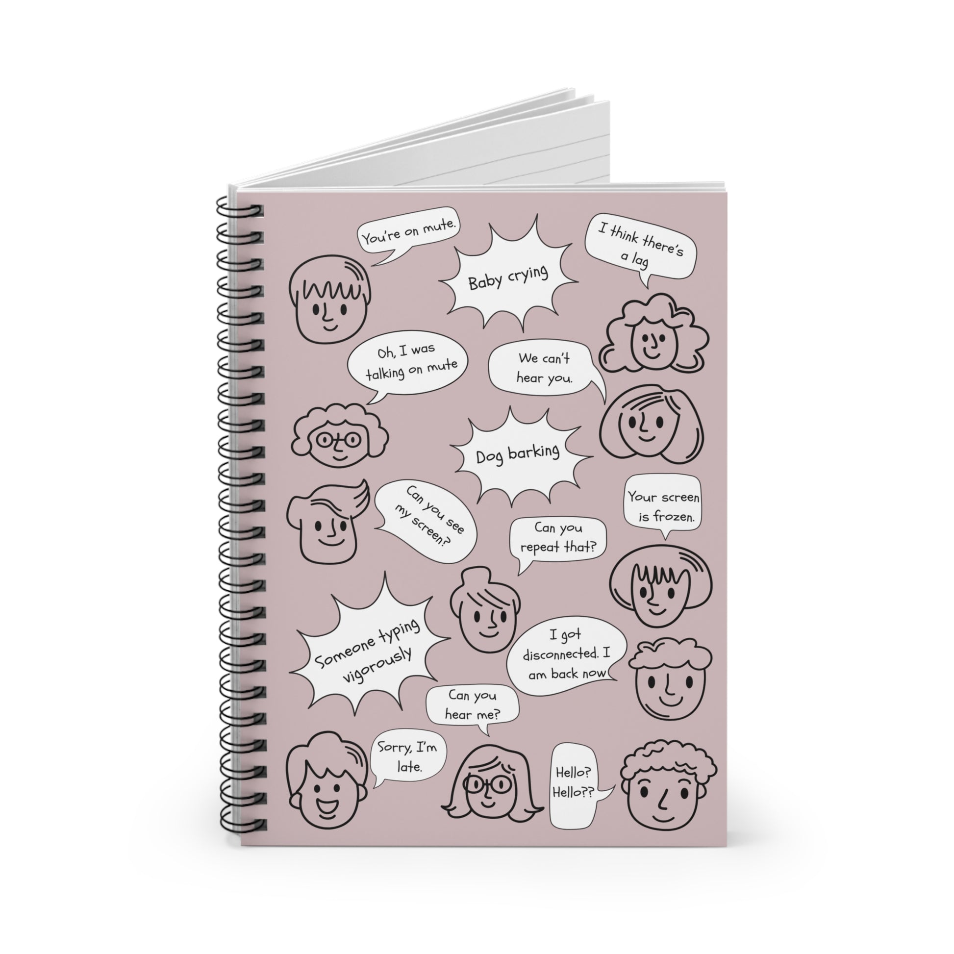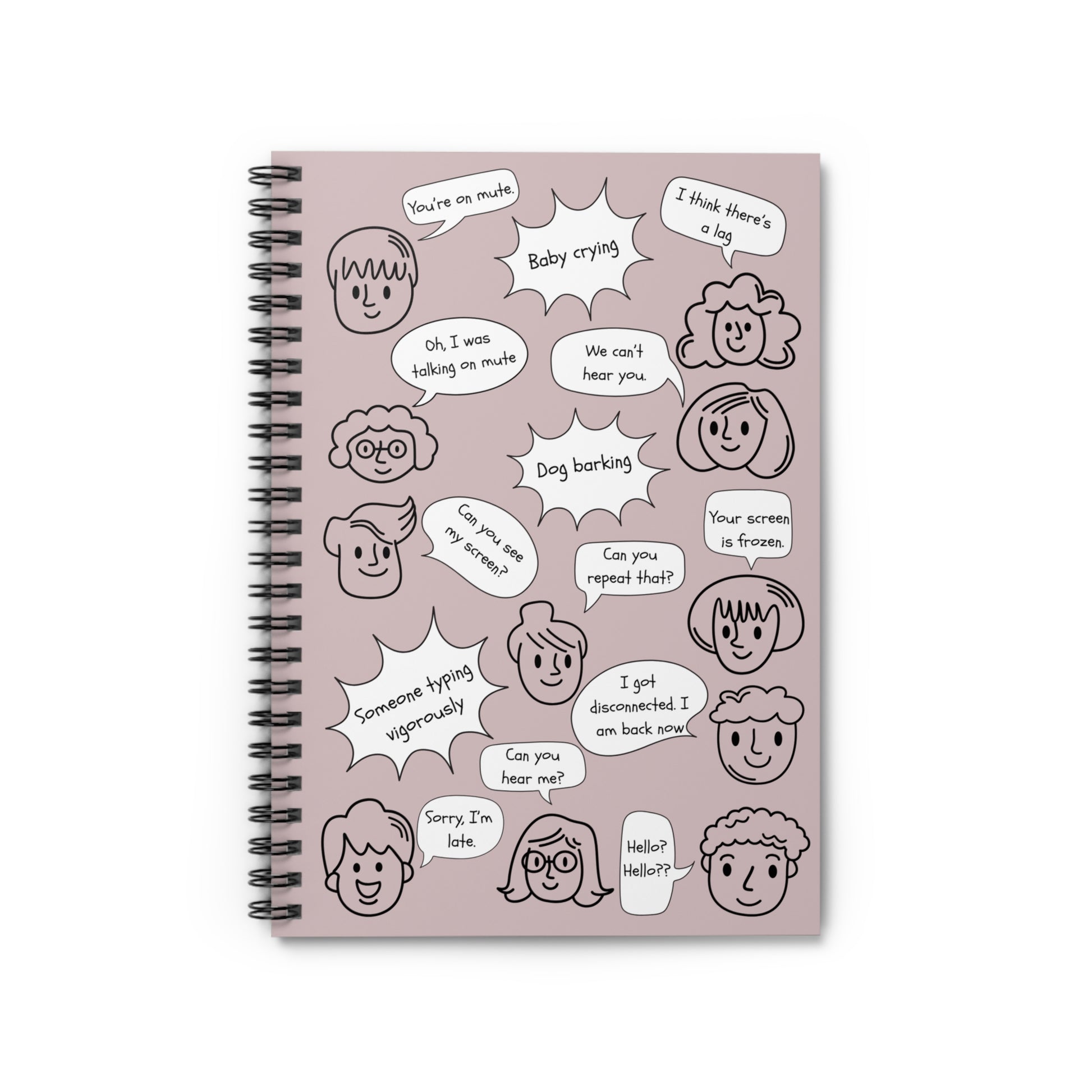 Funny Spiral Notebook - Ruled Line with Document Pocket, Dusty Rose, Work from Home Essentials, Conference Call Bingo, You're on Mute