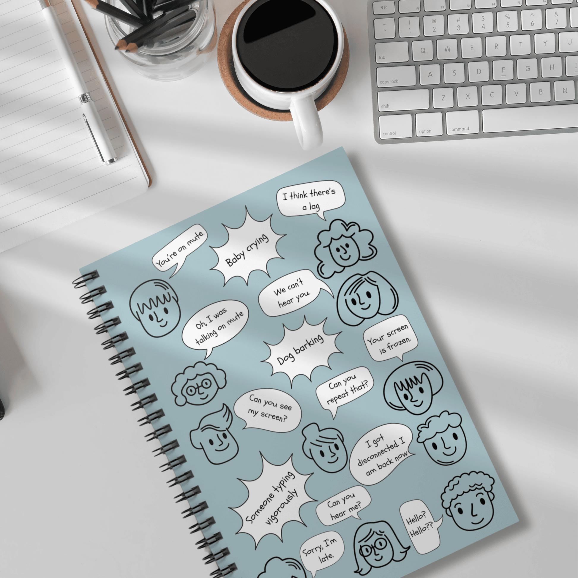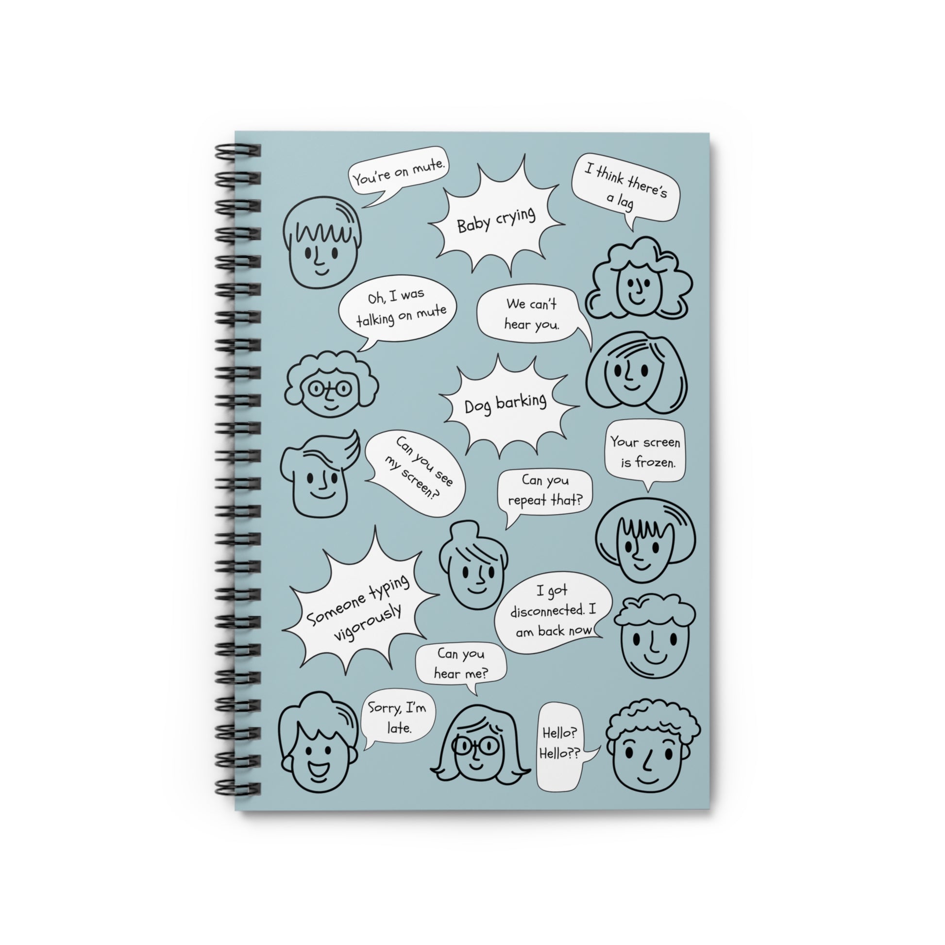 Funny Whimsical Spiral Notebook with Document Pocket, Remote Working Humor, Conference Call Bingo, Home Office, Gift for Boss, Coworker