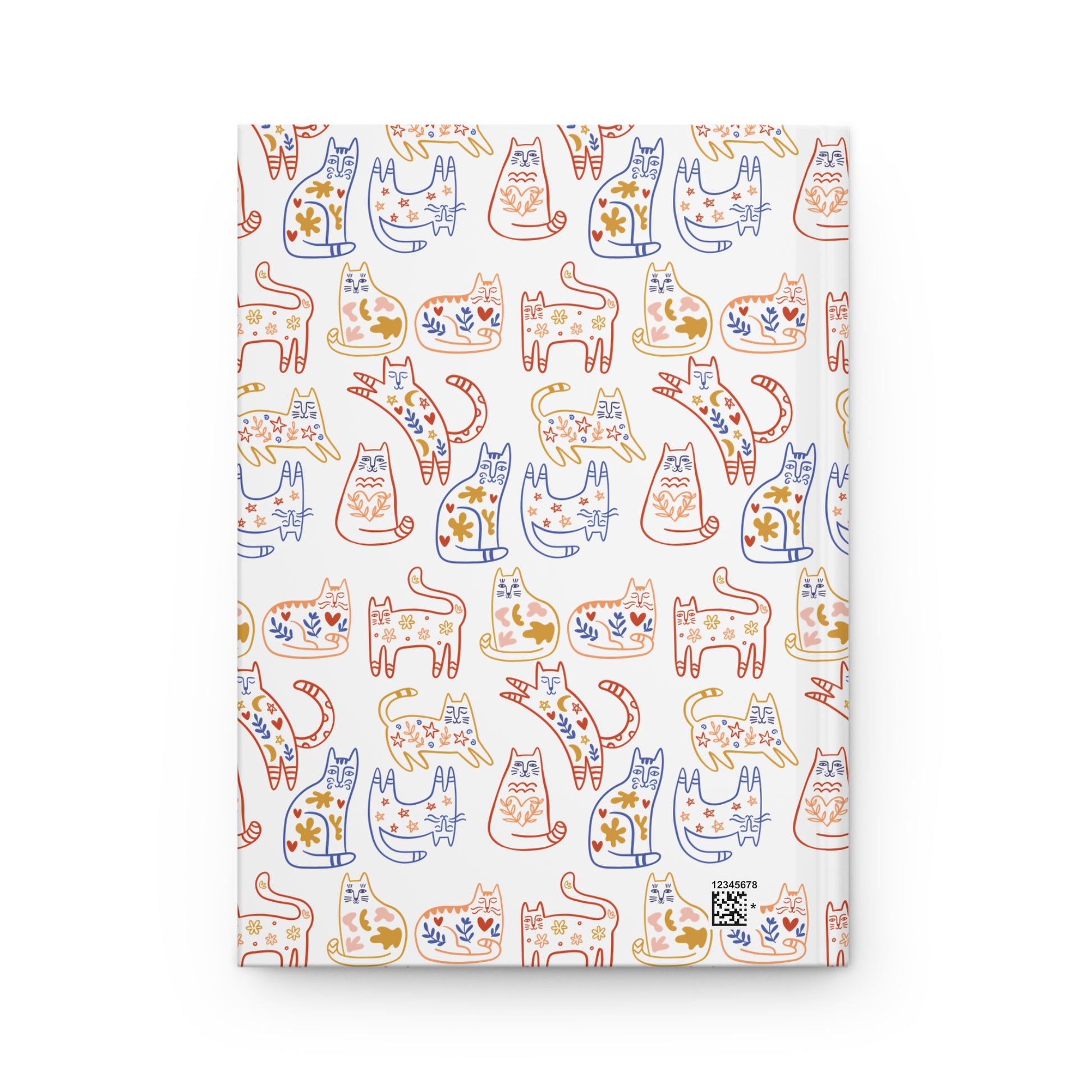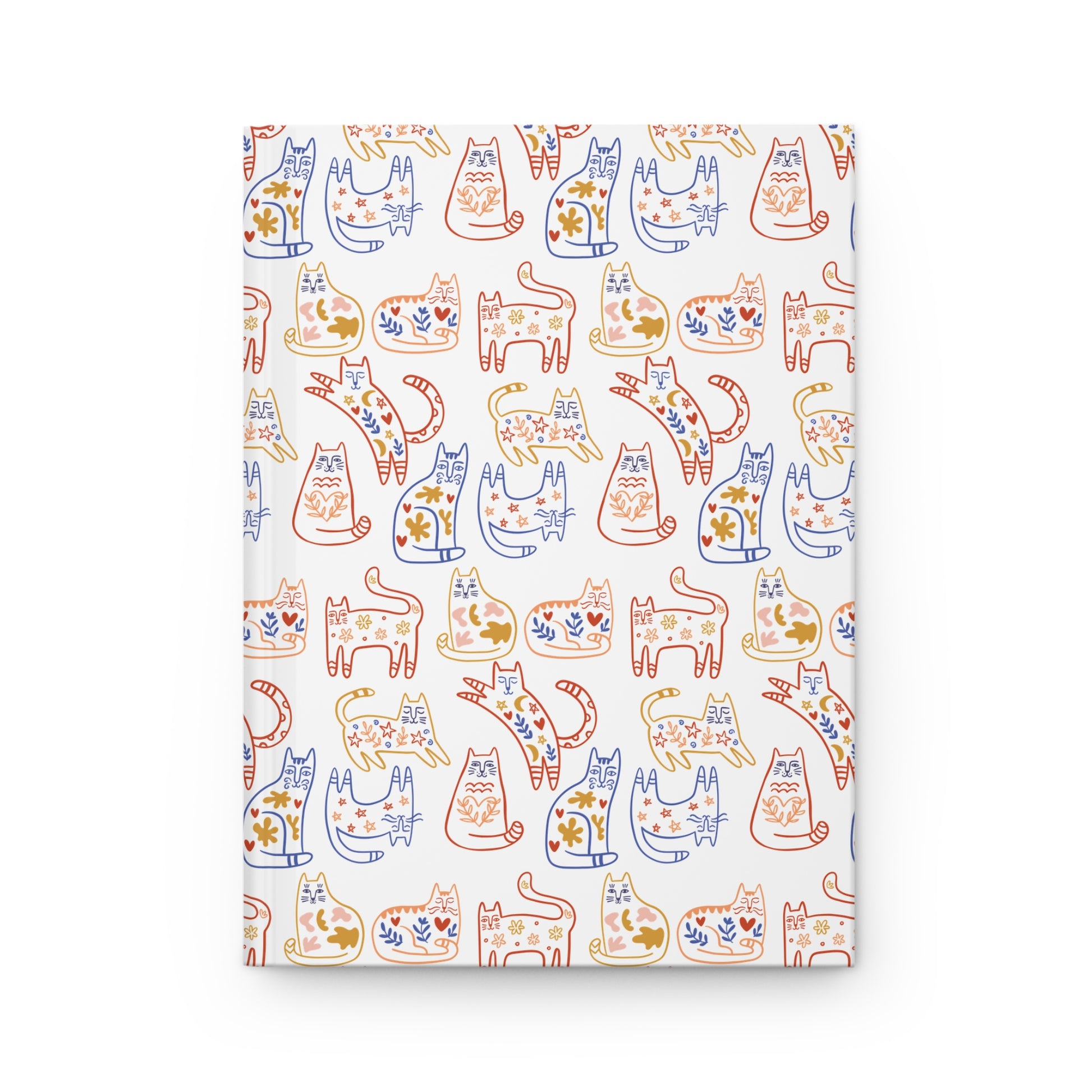 Hardcover Journal, Scandinavian Folk Art Cat Design Notebook, Secret Santa Christmas Gift, White Elephant Gift for Cat Lovers