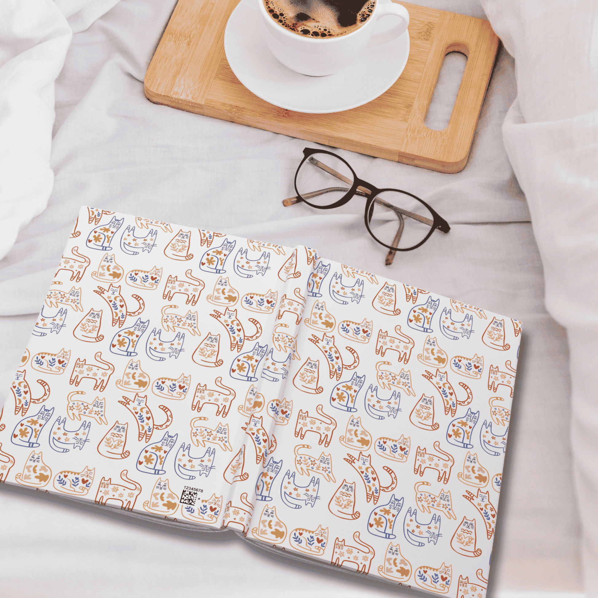 This Journal features a captivating design with Orange Yellow Scandinavian Folk Art Cats, giving off a cozy and whimsical vibe. Perfect for cat lovers and fans of Scandinavian design, this journal is ideal for jotting down thoughts, notes, and sketches. Great for gifting during holidays, birthdays, and special occasions.