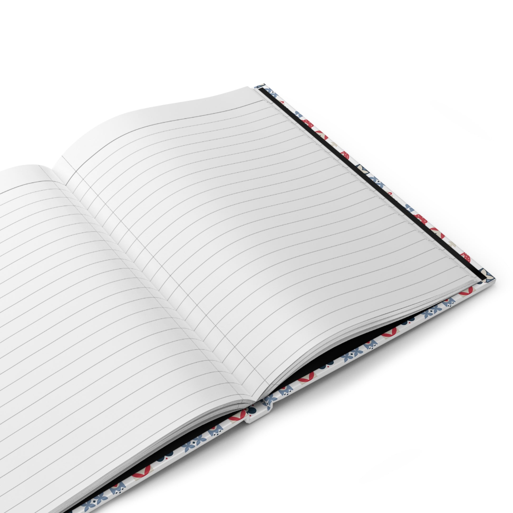 Hardcover Ruled Diary Journal, Nature-Inspired Scandinavian Folk Art Inspired Design, Blue and Yellow Notebook, Secret Santa Gift