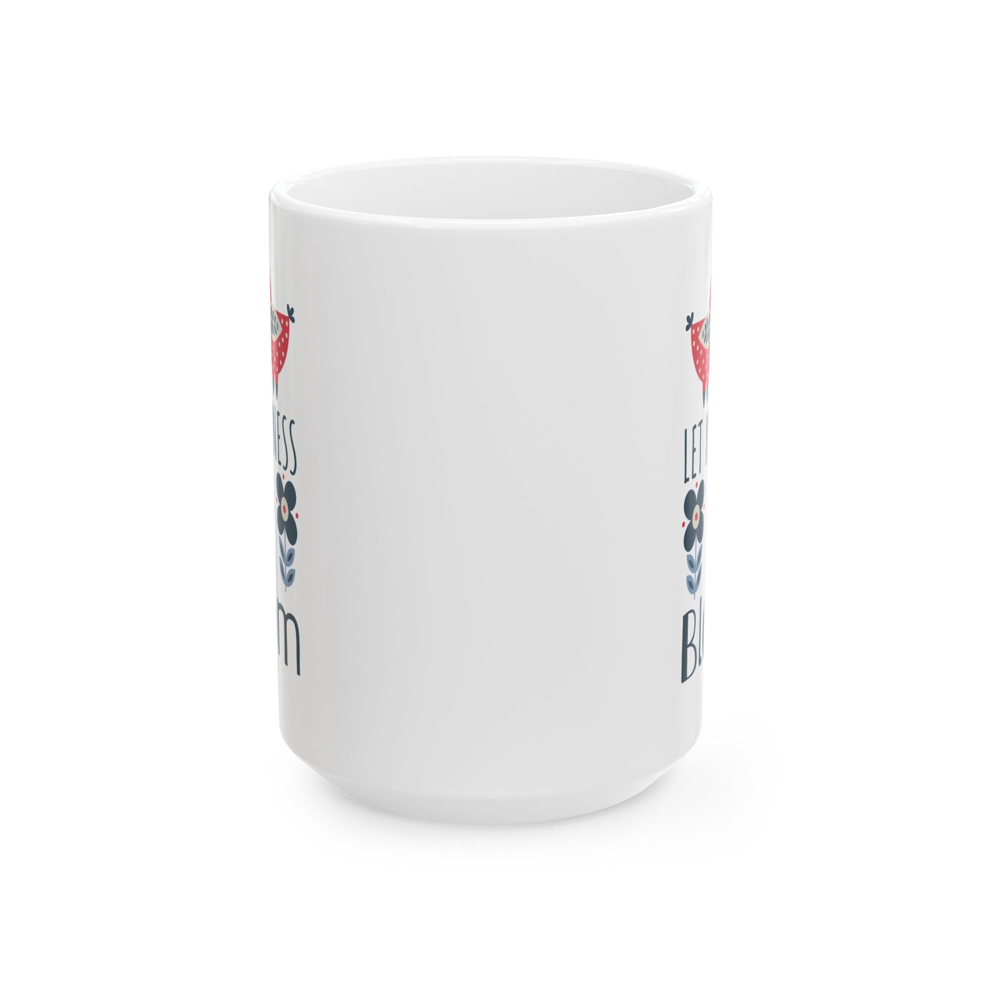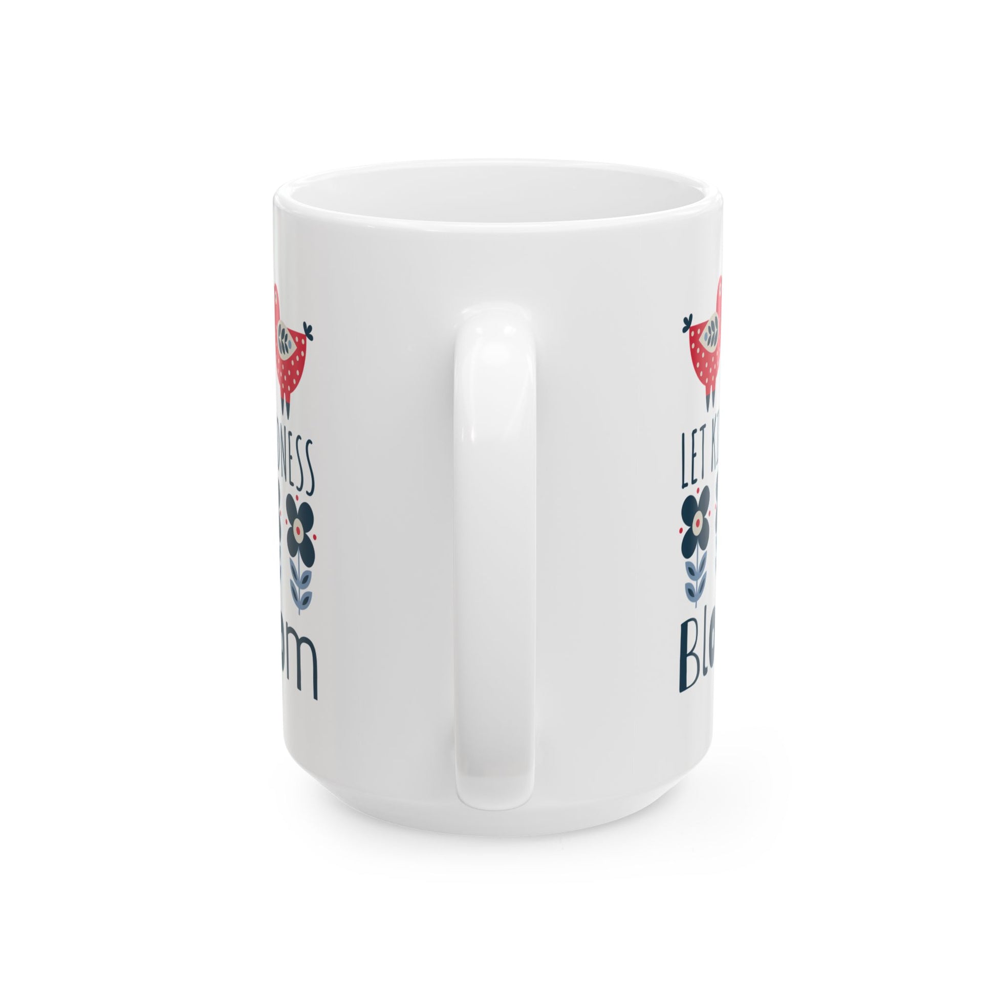 Kindness Mug - Let Kindness Bloom, Scandinavian Nordic Bird and Flower Design, Coffee Lover Gift, Tea Cup, BPA Free Ceramic Mug 11oz/15oz