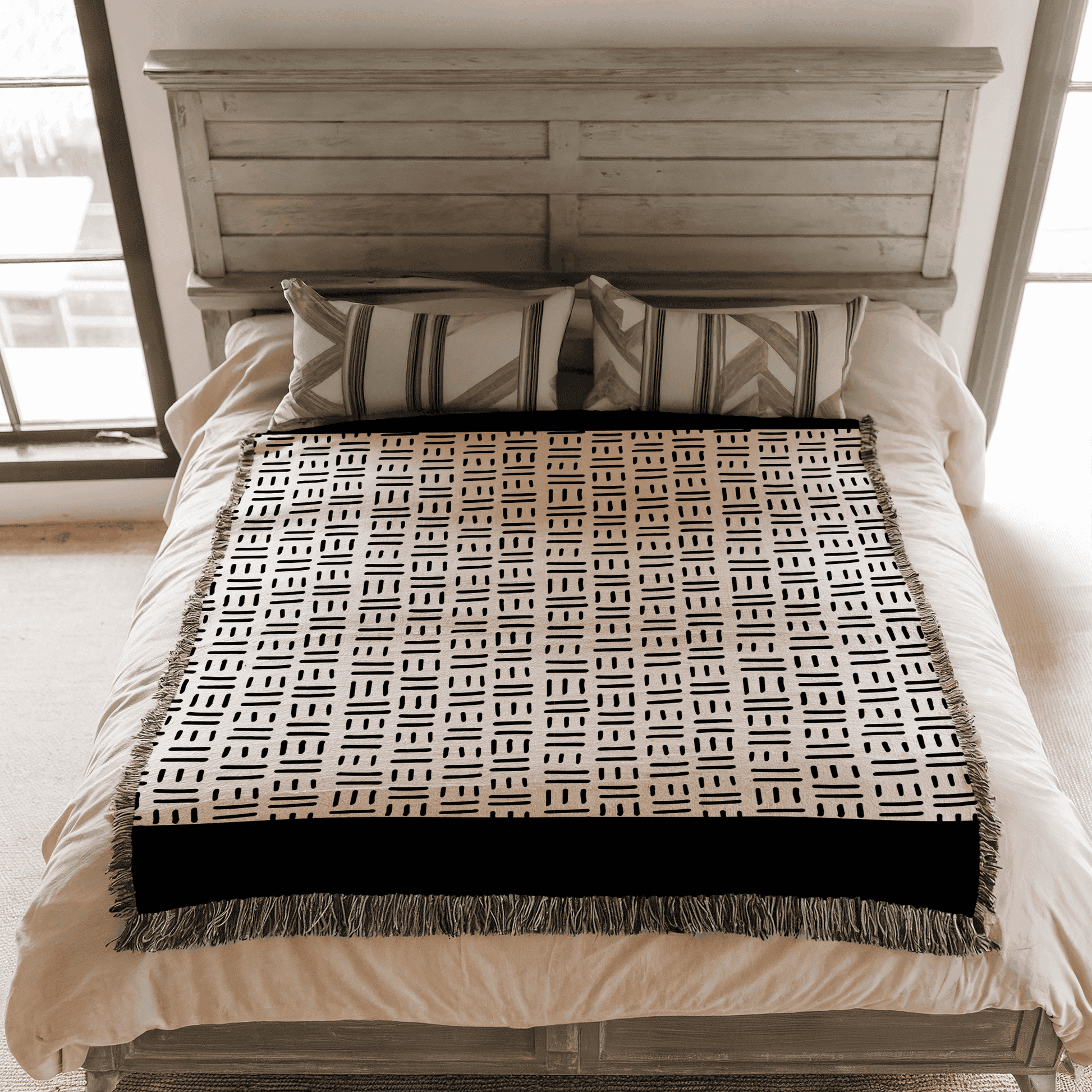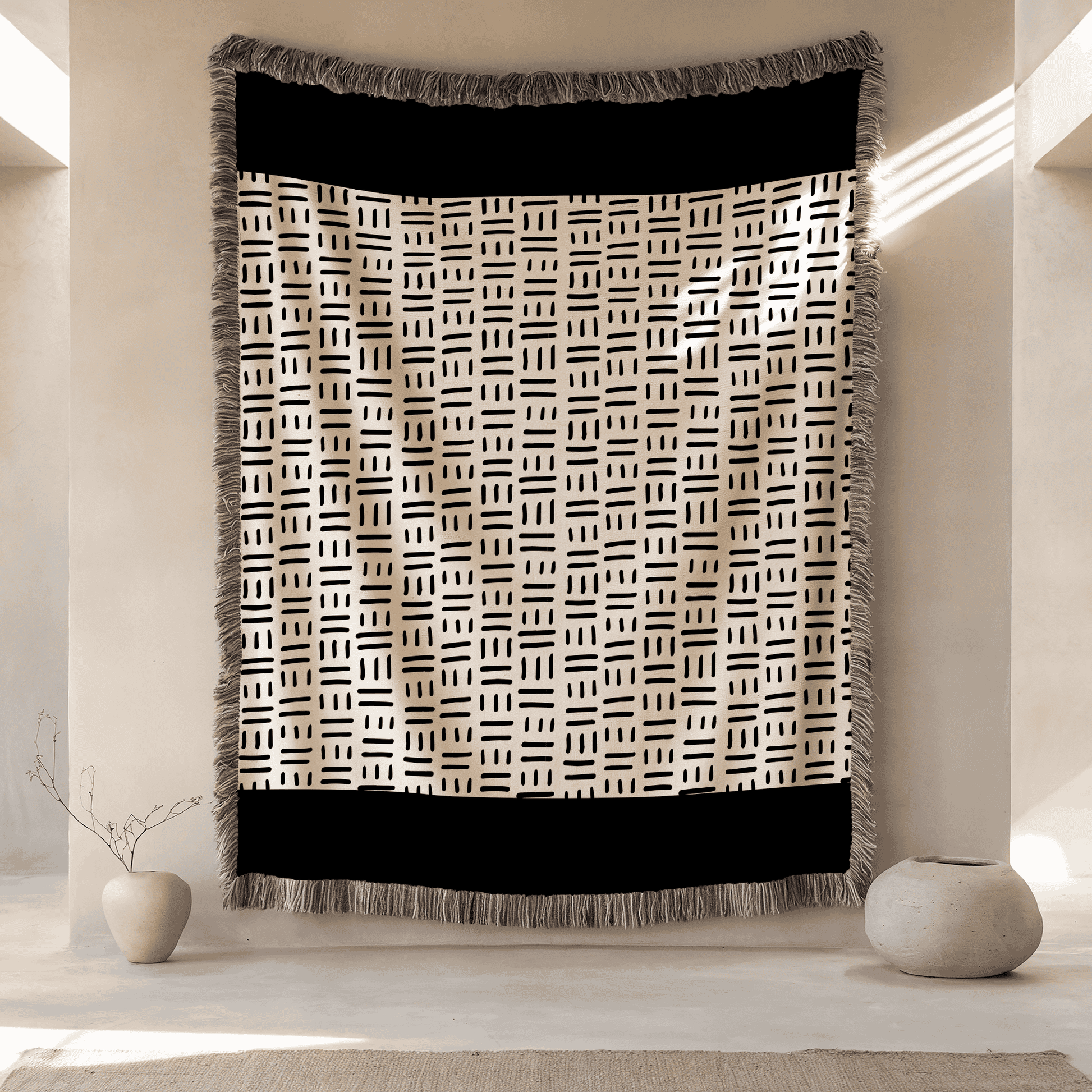 Minimalist Woven Blanket in Aztek Pattern, 100% Cotton Throw Blanket, Black and Beige Home Decor, Housewarming, Christmas, Birthday Gift