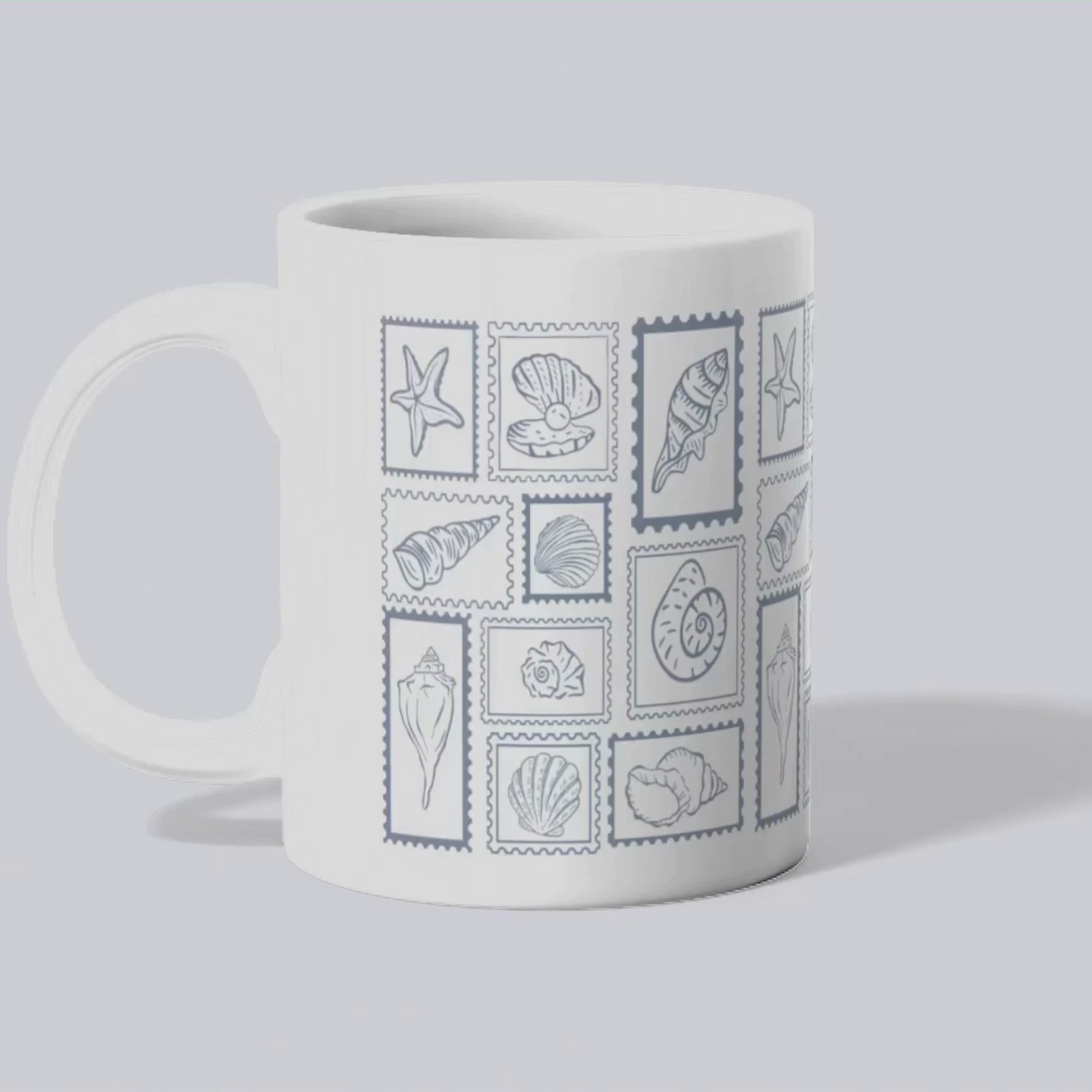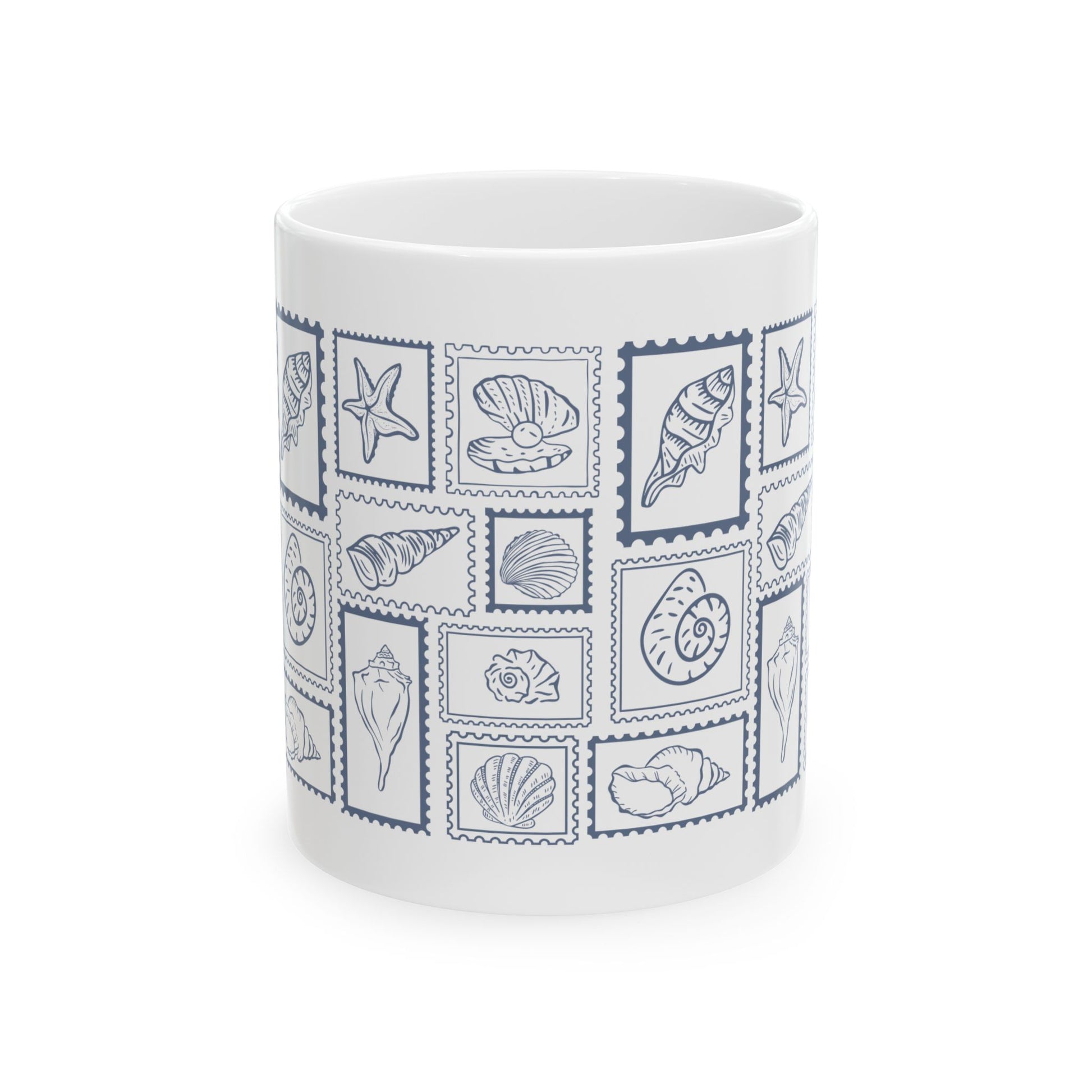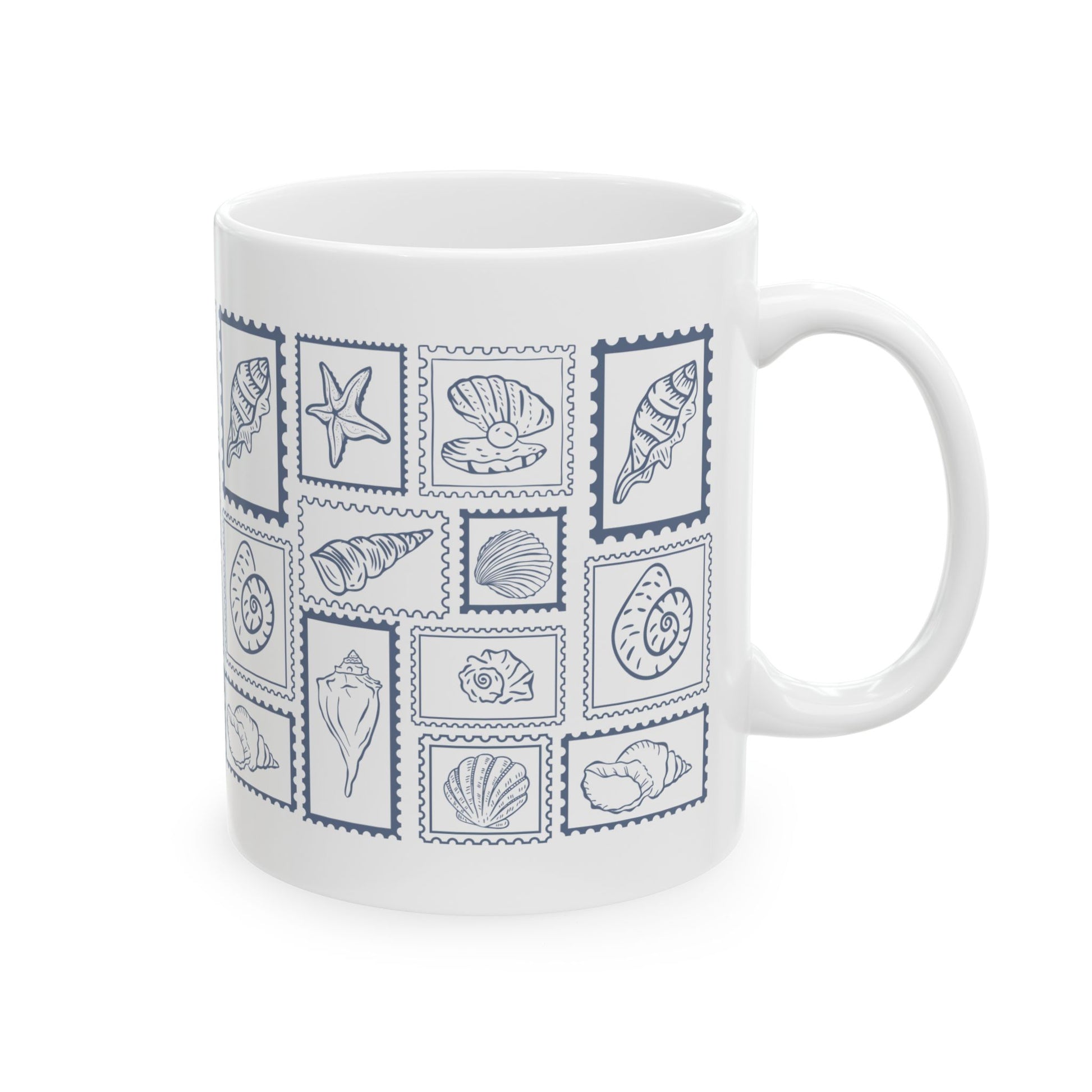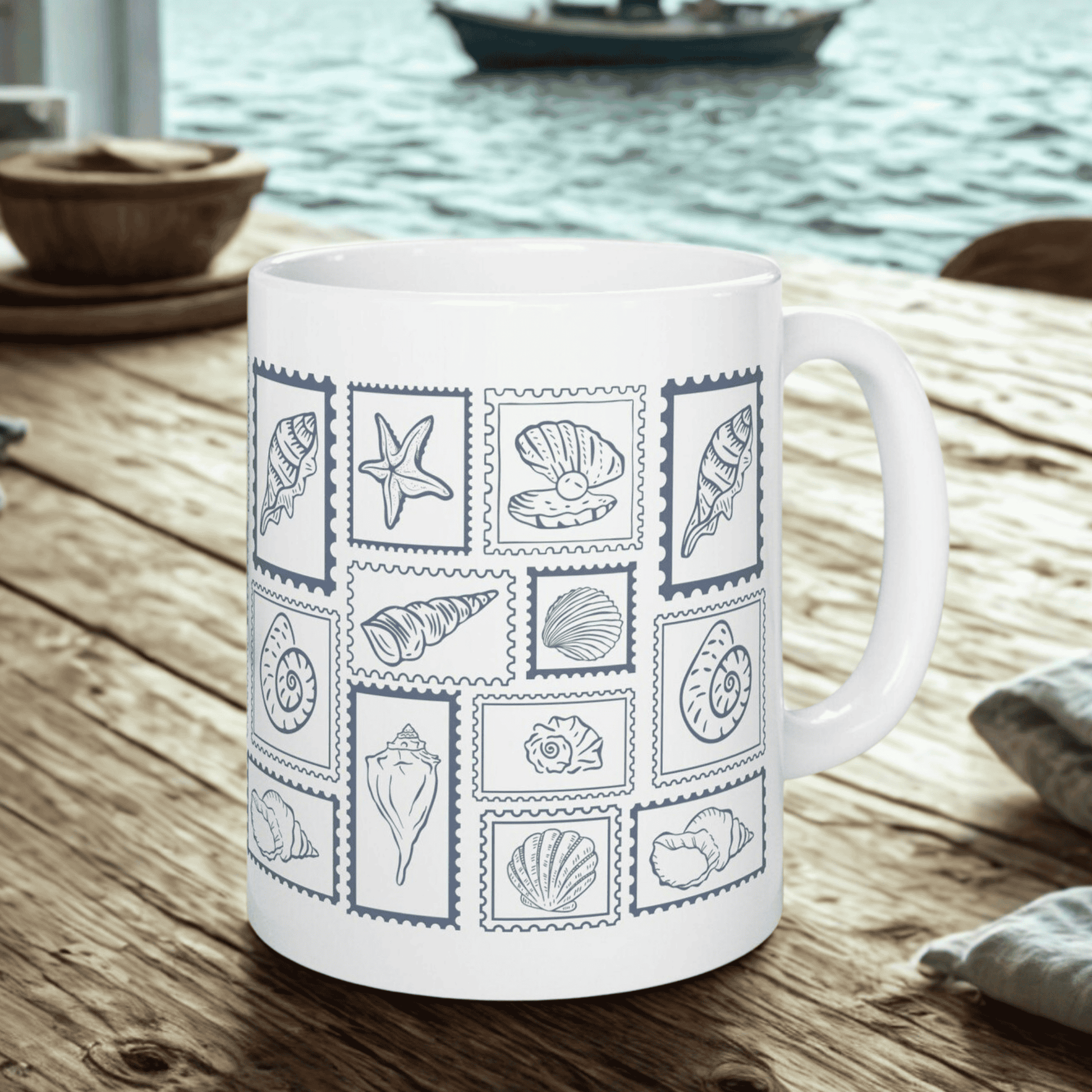 Shells & Stamps Ceramic Mug - Coastal Decor, Ocean Lover Gift, Nautical Kitchen, Beach House Essentials, Summer Vibes