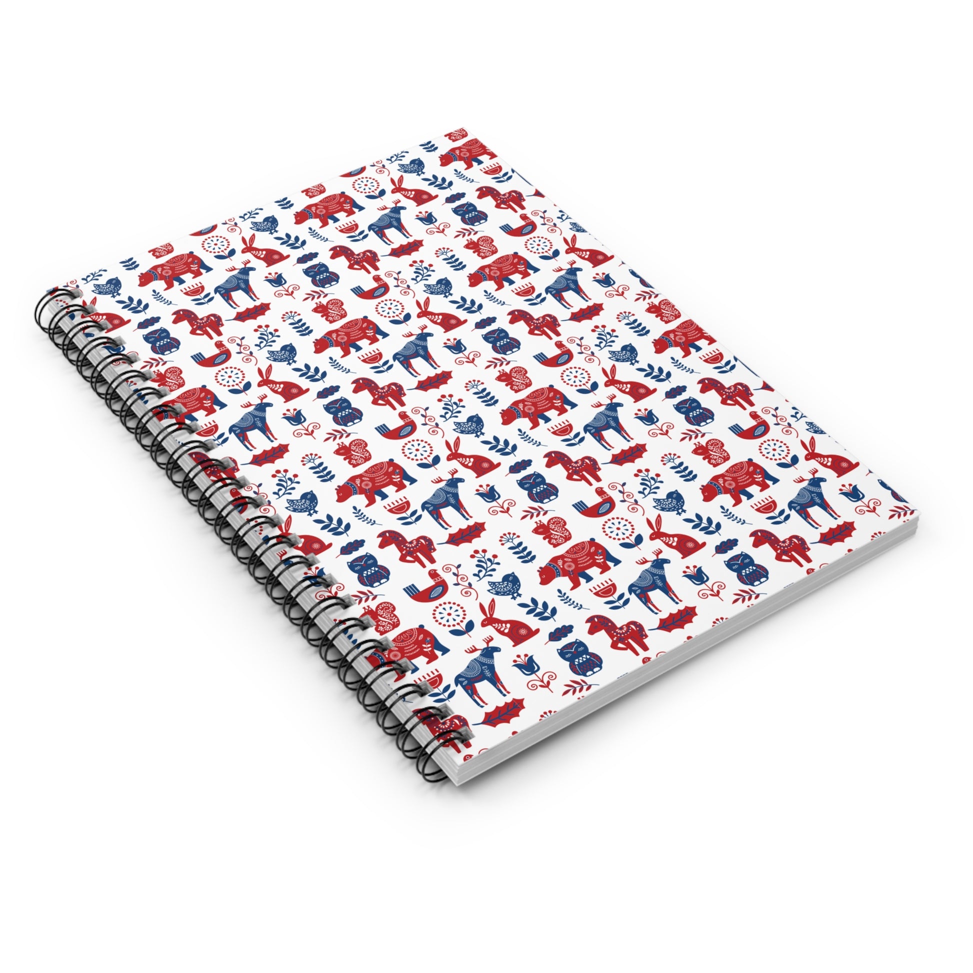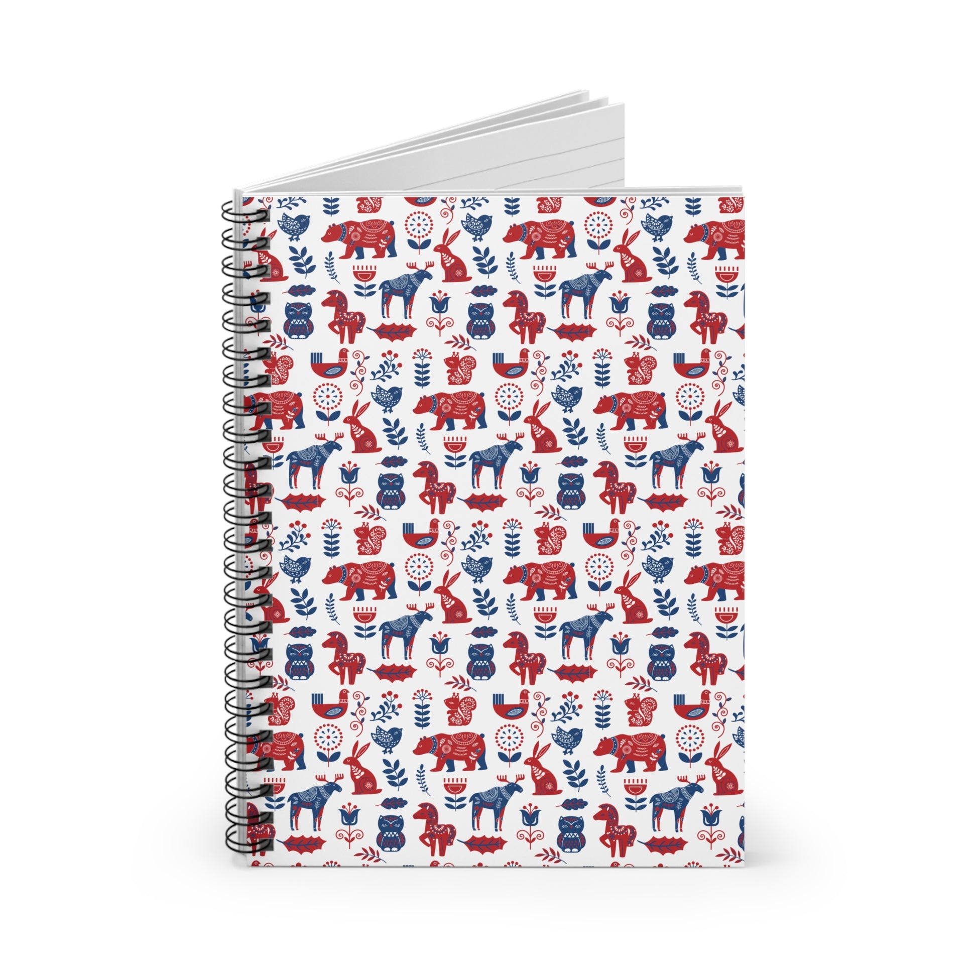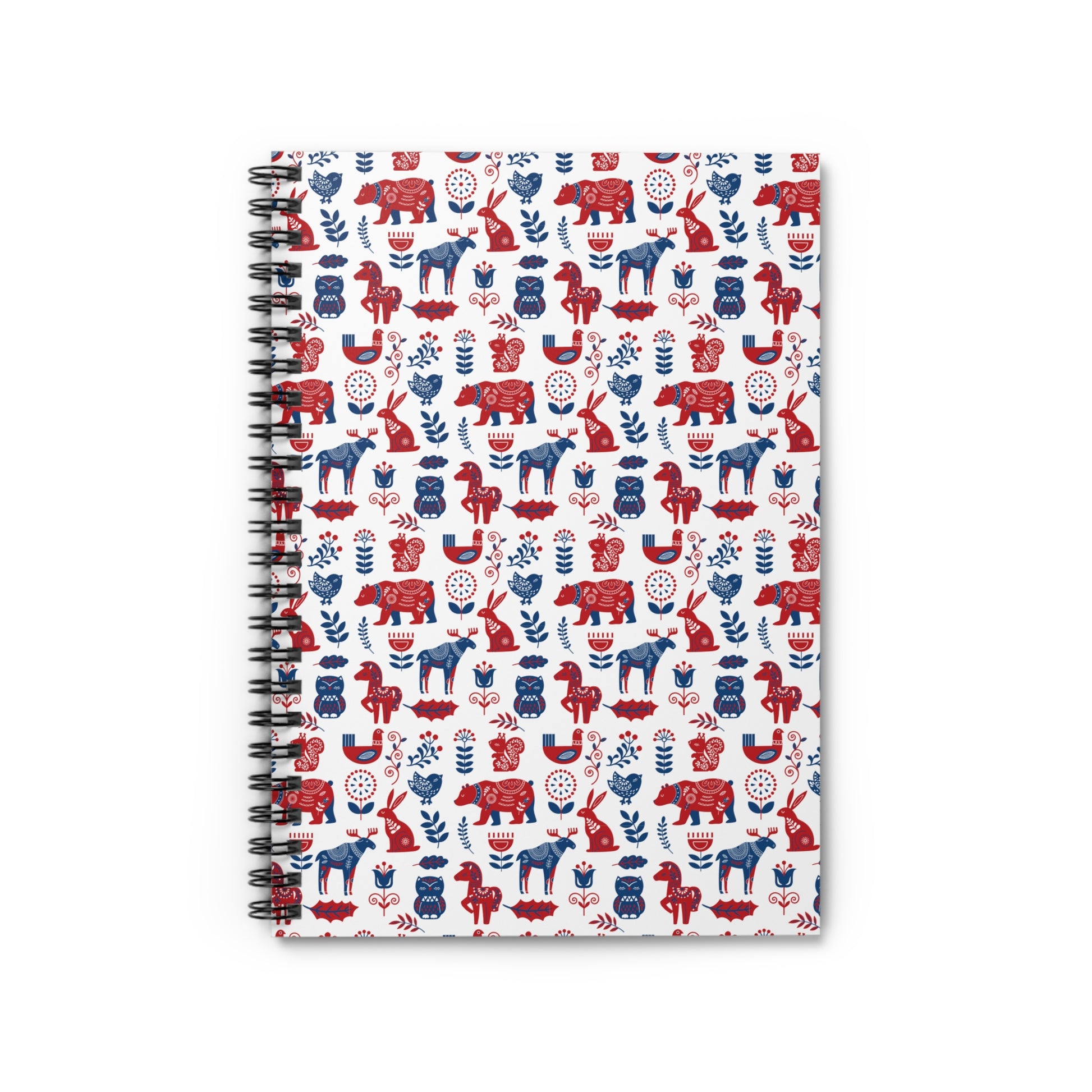 Spiral Notebook - Scandinavian Animal Pattern, Ruled Line, Cute Stationery, Gift for Students, Journaling, Writing, Creative Note-taking