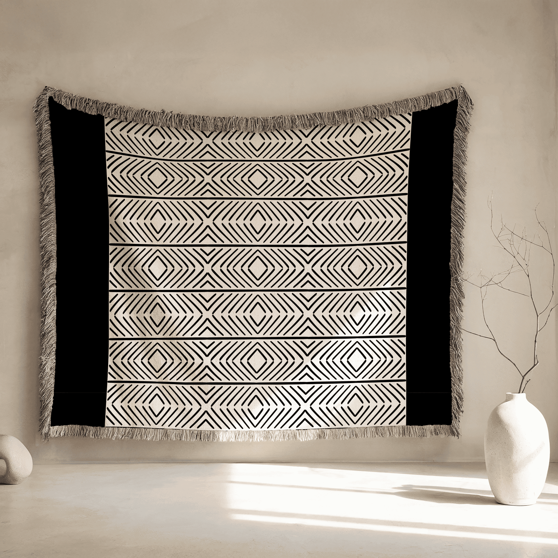 Experience warmth and style with this expertly woven minimalist blanket featuring an Aztek-inspired chevron pattern. Crafted from 100% cotton, it offers both softness and durability, ideal for relaxing on cool evenings or enhancing your interior design. The fringed edges add a subtle decorative flair, making it a standout piece in any room. Perfect for those valuing practicality and elegance, this versatile blanket is suitable for quiet nights in or as a refined gift for housewarmings, birthdays, and festive occasions. Elevate your living space with this cozy and thoughtfully designed throw.