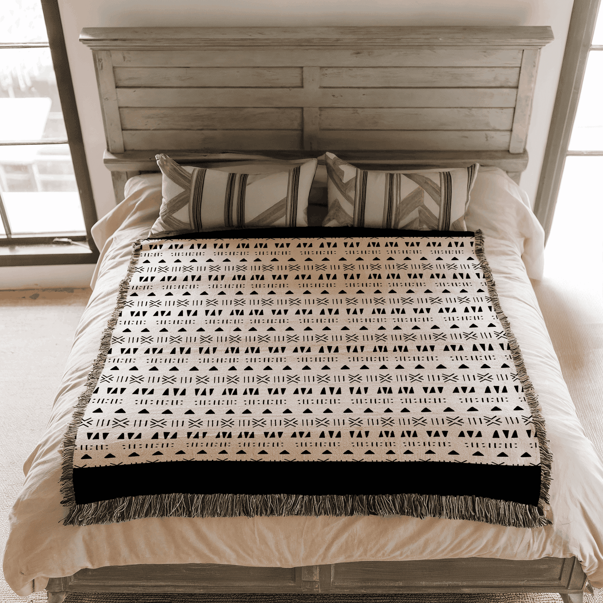 Woven Blanket, Wall Decor, Minimalist Throw Blanket, 100% Cotton, Beige and Black Blanket, African Tribal Pattern, Housewarming, Christmas