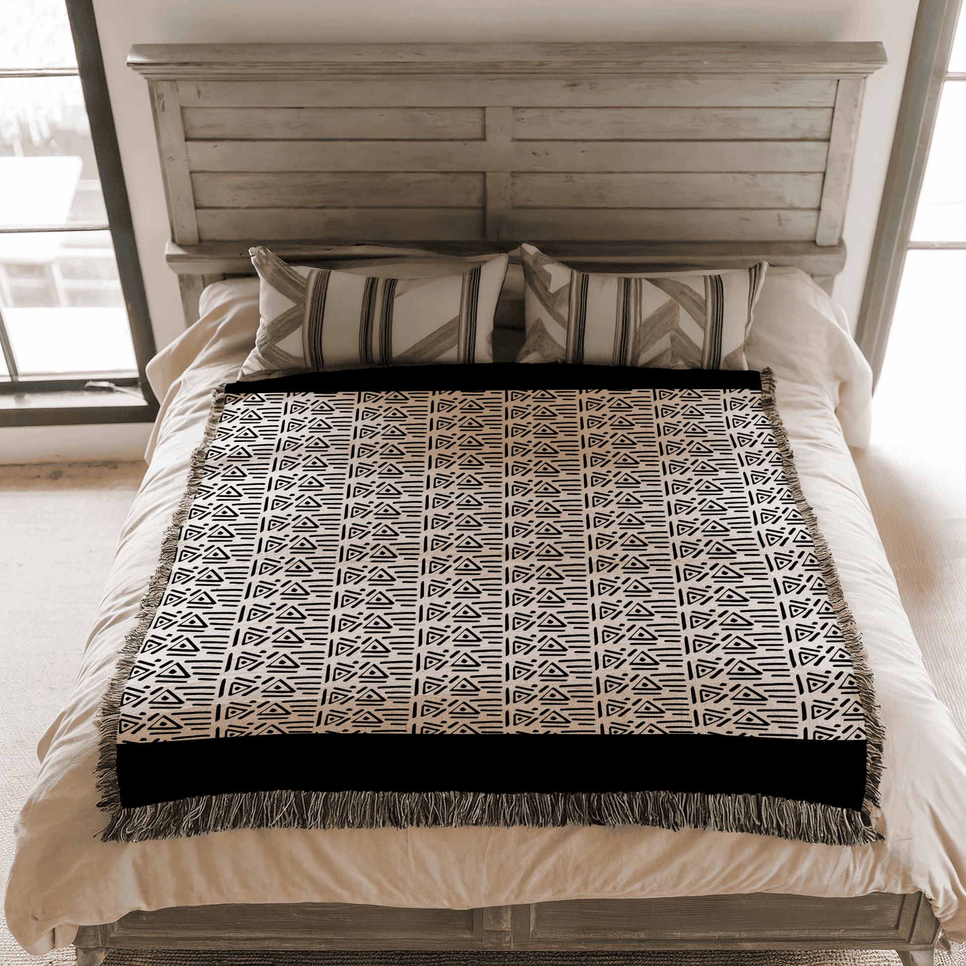 Woven Throw Blanket Aztek Pattern, 100% Cotton, Black and Beige Minimalist Home Decor, Housewarming Gift, Christmas, Birthday Gift